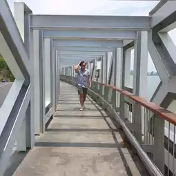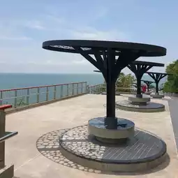 Another landmark of visiting Bangsaen, Chonburi Province is a viewpoint where you can see a wide view of the sea at Laem Tan and Ang Sila. The viewpoint is a walking path parallel to the sea. Along the way, there is a viewing terrace and a very innovative circular pavilion for sitting and relaxing in the sea breeze. The highlight is the white letter tunnel with the English name Bangsaen Khao Sam Muk, where you can stand and take cool photos. There are also many locals, little monkeys, living in the viewpoint, blending in with the many tourists. But be careful not to put your things down or carry them, they are naughty.
