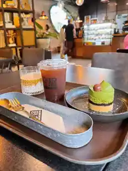 contrasting with the lush green lawn, giving a sense of openness and spaciousness. The shop has natural light inside. There are both coffee and non-coffee drinks to choose from, and there are also a few cakes and desserts on the menu. Hoppers must not miss it.