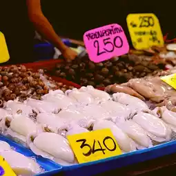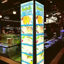 🎌 Bangsaen Fish Market, Japanese atmosphere, is a Japanese-style fresh seafood market that has delicious Japanese food, good products, souvenirs, and various types of fresh seafood from the sea, including shrimp, squid, crab, shellfish, and various types of fish.