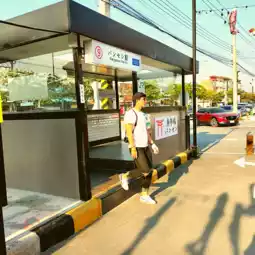 🀄️ There are also many beautiful photo spots to check in, starting from the entrance road with a red door, big fish, cherry trees, Bangsaen Station subway station in front of Bangsaen Fish Market. If anyone comes to visit Bangsaen, try stopping by to take pictures or buy fresh seafood. Here, they have a service to boil and steam it for you, or you can buy it in a foam box to take home. 555 I like it very much.