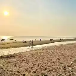 Bangsaen Beach is not as crowded as before. The area has been redesigned to look more open and airy. The walkway to buy food is now more comfortable and wider. The chairs on the beach are spread out and not too crowded.