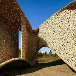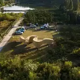 Every weekend, visitors from Shanghai and its surrounding cities visit the rural island of Chongming, China, a beautiful island that draws local tourists for its ecology and agriculture. Together, designers and students collaborated to construct a pavilion that would activate public space in this rural area. The choice of bamboo as the primary material for the project gave literal and figurative shape to the design: the pre-material production, processing, and on-site installation were all important considerations. Bamboo is a local resource that, after being subjected to high-temperature cooking, carbonization, and corrosion treatment, is easily transported to the construction site.
