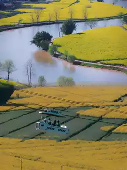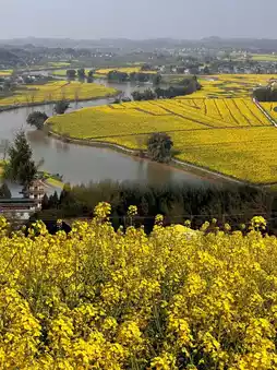 Everyone knows about Tongnan's 10,000-acre rapeseed flower fields. A true springtime special! These manga-like fields are incredibly beautiful to photograph! Attraction #1: Chen Tuan's Hometown Rapeseed Flower Scenic Area in Chongkan Town, Tongnan District. While the flowers may have been a bit sparse a few days ago, now is the peak bloom time. Once a year, drive 1.5 to 2 hours from the main city and you can check in at the Chongkan Flower Sea Scenic Area, Chen Tuan's Hometown, inspired by Hayao Miyazaki's manga! While the scenic area isn't small, the scenery is similar across the board. Find a few photogenic spots. First, head to Chen Tuan Mountain and climb to the top for a bird's-eye view of the flower fields, perfect for some portraits. Second, walk to the pavilion at the center of the scenic area. From a high point, you can capture the feeling of being surrounded by rapeseed flowers. Third, a large Tai Chi pattern can be seen in the flower fields at the center of the area, which can be captured from an aerial perspective or by climbing Chen Tuan Mountain for a distant view. Fourth, there are daily circus and acrobatic performances, and boat trips are also available. 5. The train is also a great place to take photos, and you can even take a train to explore the sea of flowers. It's quite relaxing! When taking photos, remember to wear light-colored clothes, a straw hat, a garland, etc. A long horn or portrait lens would be even better!