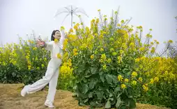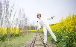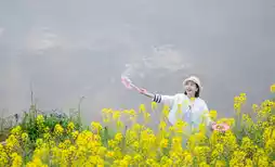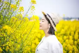 The space rapeseed flowers are not planted in large patches, but on both sides of the road, like street trees, so you can take a lot of beautiful photos, such as bending down to smell the flowers, reaching out to touch them, and shooting from a low angle. However, this perspective is relatively ordinary. We can try to jump up and compare our height with the flowers, which can better highlight the activities of spring and make the photos more interesting.