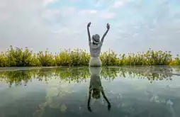 The biggest feature of the Chongkan rapeseed flower sea is that it has mountains and water, and is surrounded by two rivers. Water is a very important element here, so our pictures can also focus on the water. For example, by the river, we can use a higher perspective, shoot from a bird's-eye view, and use the river surface as the background. Here we used a small prop called a bubble machine (sold everywhere in the scenic area) to blow bubbles, or jump gently, or run slowly, with the river as the background and the rape flowers as the foreground. The picture will be clean, which is a good angle for taking pictures.