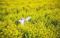 The location of the landscape pavilion is relatively high, so we can use a relatively high perspective to reflect the magnificence of the rapeseed flowers. Here we used a more common guide, a silk scarf. In fact, other guides can also be used, such as a bright umbrella, a heart-shaped balloon, etc. When shooting from above, the entire sea of flowers can be used as the background, and people and guides are unique among them. They look extremely eye-catching, and at the same time they can also bring out the grandeur of the sea of flowers.