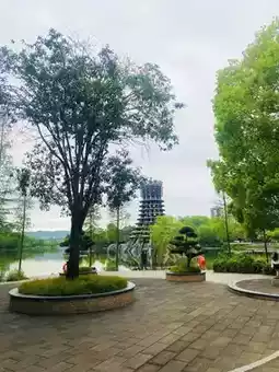 from a distance, it looks a bit like a mini version of the West Lake There are also pavilions by the lake, where you can rest if you get tired from walking.