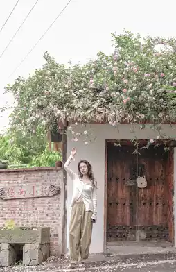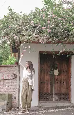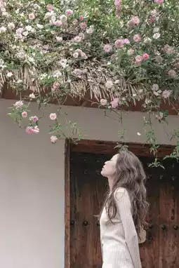 ✔️ Sit under the rose wall, use the roses as the foreground, and take close-ups with the light and shadow on your face