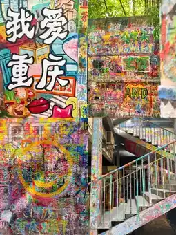 There are various graffiti, colorful and unique. The 'I Love Chongqing' graffiti and the colorful stairs are great for taking photos.