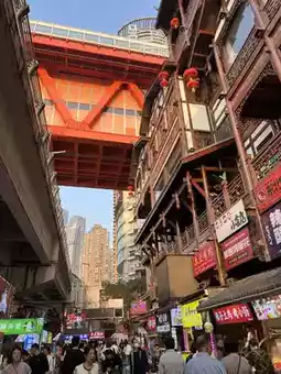 🌞 Daytime Views: Hongyadong offers incredible views during the day. The vibrant architecture of the stilted buildings contrasts beautifully with the clear blue sky and the river below. The bustling atmosphere and colorful facades make for striking photos.