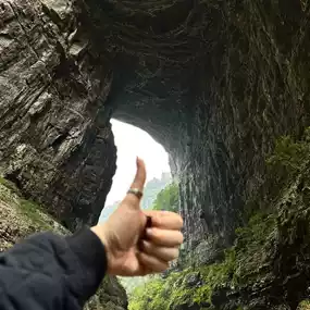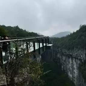 We entered through Tiansheng Three Bridges Scenic Area Glass Toaotai ticket office which leads onto an overhanging class balcony where you can see the valley below! Not for the feint of heart ð