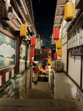#磁器口  #ciqikou This is a night view of Ciqikou. The shops usually start to close at around 8.30 pm onwards, hence no more crowds at this time. This is the best time for night scenery photos because the lighthings are still on. If you go after 9pm, most shops are already closed and the lights are off.