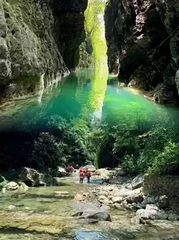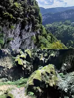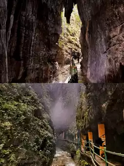 - Magnificent Canyon: The canyon is about 6.2 km long and is divided into two sections. The upper canyon is formed by karst geological action, with strong surface cutting, unique gullies, steep stone walls on both sides, and ancient vines hanging upside down. The lower canyon is eroded by water, with connected caves and pools, and stalactites and stalagmites in various shapes.