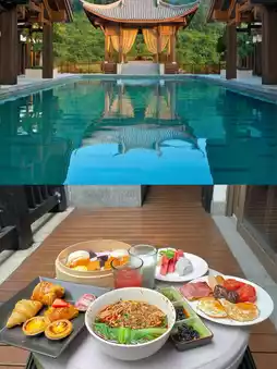 2οΈβ£ The hotel has everything! Viewing platform, petting zoo π¦, Hanfu shop, public hot spring β¨οΈ, and a gym to help you stick to your weight loss plan π