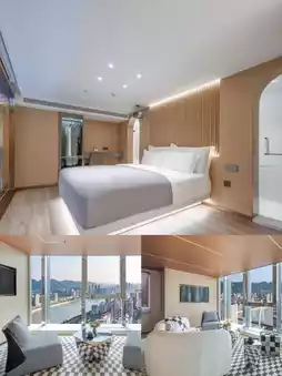 This high-rise hotel in Chongqing 🏨 even has an infinity pool! It's so photogenic! My friends on WeChat Moments kept asking me about it! 😂😂😂