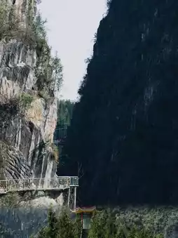 - When coming down from Ding Guanyin Temple, you can choose to walk on the aerial walkway, which will be a very special experience. Some parts of the aerial walkway are quite thrilling, especially the glass walkway. Standing on it and looking down, you feel like you are in mid-air, with a steep canyon below your feet. This feeling is both thrilling and exciting😜. While walking on the walkway, you can also enjoy the beautiful scenery of the canyon from different angles. The peaks have various shapes, some like swords, some like giants. Nature is truly a masterpiece👍.