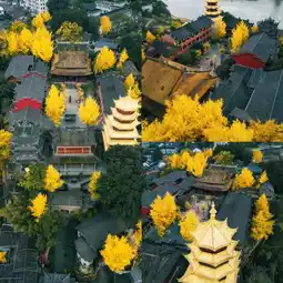 A riverside temple in Chongqing is full of ginkgo trees!
