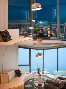 🌵The hotel design and decoration are full of modern and high-end sense. Every detail is exquisite and creative. There is a transparent bathtub, and the bathtub itself is very unique. The room is equipped with Xiaodu voice assistant, smart toilet, super large projector, Bvlgari shampoo, body lotion, conditioner, and Dyson hair dryer. You can enjoy the night view of Jiefangbei and the river view.