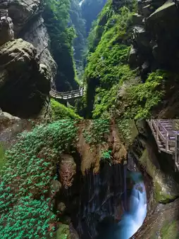 Nature's breathtaking craftsmanship is on full display here. Three natural stone bridges span the valley, a truly awe-inspiring sight. Walking among them, you'll feel incredibly small. You can also see the filming location for *Curse of the Golden Flower*, a perfect spot for photos!