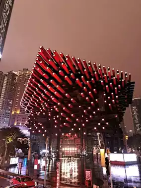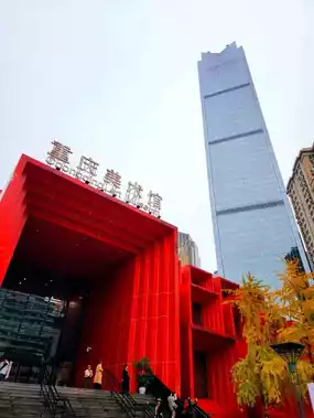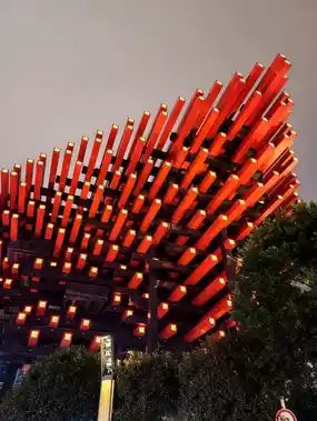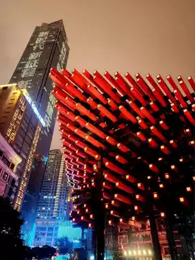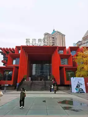 Located near the Liberation Monument, the Chongqing Art Museum serves as a public art space in the heart of the city. During the day, its unique exterior, which combines traditional and modern elements, is intriguing. However, the impression changes entirely at night when the lights are turned on. The structure, with lights embedded in each pillar, is particularly striking. Each pillar features engraved sections that light up, creating a mesmerizing effect. From a distance, it appears as if countless small engravings are glowing red, adding a distinctive touch to the city's nightscape. The interplay of the red pillars and the dark structures creates a dramatic visual impact, making the museum stand out even amidst the vibrant city lights. The exterior alone is worth admiring, and visiting at night offers a completely different experience compared to daytime. While the museum's interior is reportedly free to access, the exterior itself provides ample opportunity to appreciate its artistic architecture and symbolic design. It is also highly recommended as a spot for photography enthusiasts.