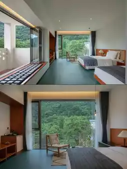 The room design of Dalezhiye cleverly combines local culture with modern minimalist style. Each room has an excellent view. When you open the window, the beautiful scenery of the mountains and forests will come into your face. The room is exquisitely decorated, with solid wood furniture and soft bedding, creating a warm and comfortable atmosphere. Some rooms also have independent balconies or courtyards. You can put tables and chairs on them, make a pot of tea, enjoy a leisurely afternoon here, and feel the gentle mountain breeze. It is so comfortable. The bathroom is separated into dry and wet areas, and the supplies are from high-quality brands, with great attention to detail.