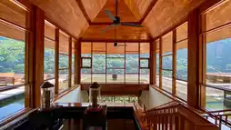 2. All the buildings in the hotel use a large amount of top-grade teak from Southeast Asia. The furniture in the book bar, tea room, bar, restaurant and other spaces in the main lobby are all made of high-quality solid wood, which is delicate, textured and full of quaint charm. The calligraphy, paintings, ornaments and books in the space exude endless tranquility, elegance and a strong literary and poetic atmosphere.