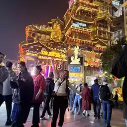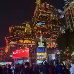 Met up with a friend near Libiza Metro Station to catch a glimpse of the famous metro gliding through a building. Dinner at **Hongya Cave**, where I captured a stunning shot of the cave and Qianyu Gate Bridge. You must brave the crowds to cross the bridge, but trust me, the night view is worth every step!