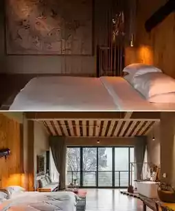 Rooms are cleverly named after everyday pleasures and scholarly pursuits like "Listening to Music by the Firewood," "Playing Chess with Rice," and "Toasting with Vinegar," ingeniously blending daily life with literary elegance. Panoramic floor-to-ceiling windows in each room face directly toward the forest—open them in the morning to see rolling clouds, and at night sleep under starry skies. Smart door locks, bathtubs, custom tea sets, and high-thread-count cotton bedding show the exquisite attention to detail and warmth of mountain living.
