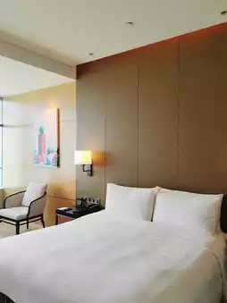 The 252 elegant guestrooms and suites span floors 54-61. Here, you can draw the curtains to enjoy 360-degree views of Chongqing’s mountainous skyline and dazzling river nightscapes, including Chaotianmen Dock, Chaotianmen Yangtze River Bridge, and the majestic confluence of the Yangtze and Jialing Rivers.