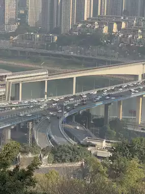 🚉 The Liziba Train Station — yes, the one where the monorail zooms through an apartment block — was surreal and totally worth the stop. 🌉 We explored the city mostly by Didi, which was super convenient and affordable for getting around the steep, multi-level streets.
