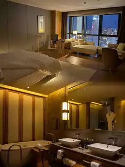 🌺 Hotel Environment: The Westin Chongqing Liberation Square is located in the heart of Yuzhong District, adjacent to the Liberation Square business area, with convenient transportation and a full range of shopping, dining, and entertainment facilities nearby. The hotel lobby features a modern and elegant design, with high ceilings and artistic decor, creating a luxurious and upscale ambiance. The guest room floors are quiet and private, offering panoramic city or river views through the windows.