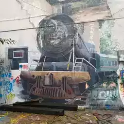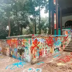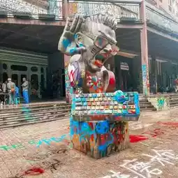 Huangjueping is home to a campus of the Sichuan Fine Arts Institute (SCFAI) - one of China's most prestigious ar universities. Extending over a kilometre from the local hospital to the 501 Art Warehouse, Tuya ("Graffiti") Street is Huangjueping's attention-grabbing artistic showcase. Hundreds of SCFAI students have transformed the walls and windows of apartment blocks here into a riot of colour, as unicorns, monkey-men and three-eyed monsters stare down at passers-by.