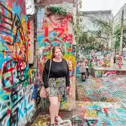 To arrive at Huangjueping, we took a didi and entered this location into the search. It is a well known area in Chongqing but it is further out that most of the attractions people visit while in the city. It’s free to walk around and you should definitely take time to study the sculptures and murals painted all over the street. People are still adding to the walls, with spray paint available to use along the way.