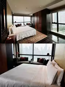 Rooms start from 57 sqm, offering ample space. The modern Chinese decor incorporates many Chongqing elements, like unique patterns on the carpets and artistic mountain city paintings on the walls. Amenities include a Dyson hairdryer, Bluetooth speaker, and wireless charging. The mini-bar is complimentary, and three pieces of laundry or ironing are free daily—perfect for someone like me who’s a bit lazy~