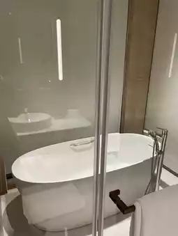 The medium-firm mattress and lightweight down duvet ensure a perfect night's sleep~The bathtub faces floor-to-ceiling windows, making you feel like you're floating above the city – ultimate relaxation!