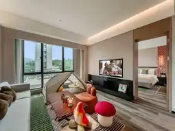 Last weekend in Chongqing, the first hotel I checked into after getting off the high-speed train was the Somerset Serviced Residence Chayuan, and I'm still reminiscing about it. It was my first time staying with this brand, and out of curiosity, I booked a unique camping-themed suite. To my surprise, it had an incredibly strong camping vibe—from the elevator lobby to the hallway, everything was decorated with camping-themed elements. The living room in the suite even had a tent set up inside! I can only imagine how much kids would love this place on a family trip.