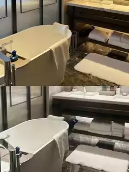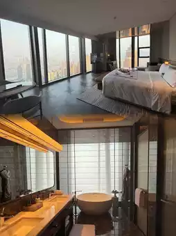 Entering the room, the thoughtful touches instantly win you over 😃. The toilet comes with an automatic lid-opening feature for added convenience and hygiene. The shower gel emits a captivating fragrance, turning every bath into an olfactory delight. The showerhead delivers water at the perfect temperature and pressure, ensuring a comfortable and refreshing experience. The high ceilings give the room a spacious feel, with a minimalist yet luxurious vibe. Small touches like the lamp tray and ice bucket feature woven leather designs reminiscent of BV, exuding sophistication. The most delightful surprise is the square bathtub by the window in the premium rooms, meticulously wrapped in luxurious stone and seamlessly integrated with the sofa. Sitting here, you can enjoy a relaxing soak while taking in the breathtaking views outside—pure bliss 🛁!