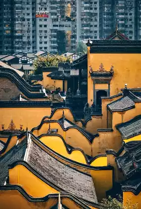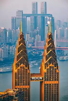 π12β£: "Chongqing Himalaya Executive Residence," where ancient and modern converge, framing the Qianfo Temple and Raffles City together.