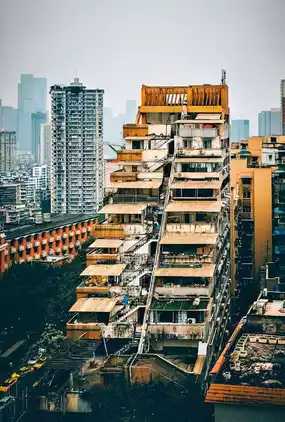 π11β£: "Hua'an Building (Pipa Mountain Main Street)," a stepped structure with a magical view from the 17th-floor restroom.