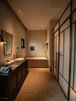 The exposed rammed earth walls still carry the warmth of the craftsmen’s palm prints.