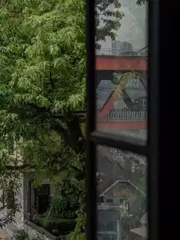 watching the romantic rivers and mountains of the city from the foreign trading villa’s terrace—