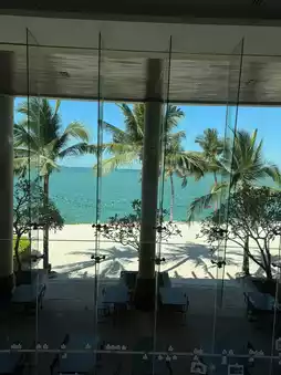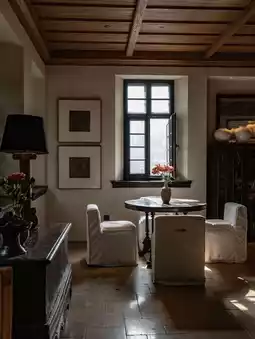 Hidden on the terrace under the swaying tree shadows, sipping soup in the old bank vault,
