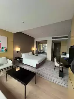 The room is quite spacious, there is free capsule coffee, and the scenery is first-class.