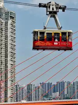 In the golden glow of a Chongqing summer afternoon, the Yangtze River Cableway glided above the water like a floating time capsule. We boarded the red-and-white cable car, windows wide open to let in the warm breeze. As we soared across the river, the entire city unfolded boats drifting below, skyscrapers rising on both sides, and the mighty Yangtze gleaming under the sun. 🚡🌇🛥️