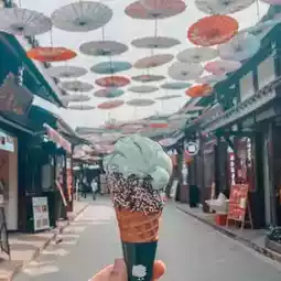 When near the subway area of the Ancient Town, you’ll experience a more modern approach. Many food shops like in the city and delicious ice cream!
