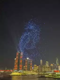- Thousands of drones (think 3,500–10,000+!) sync to create 3D animations: pandas, spaceships, dragons, and even Chongqing’s iconic skyline!