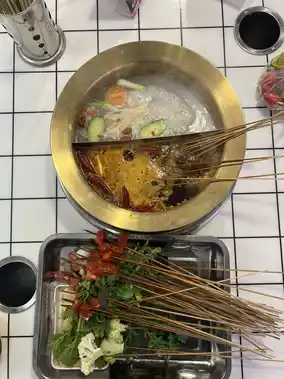 Strolling and eating casually on Jiefangbei Pedestrian Street, I opted for the "Nine-Grid Hot Pot" for supper! (If you prefer spicy food, order it mildly.)