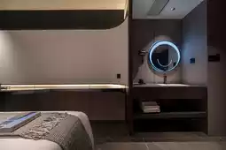 Equipped with a high-definition projector and Tmall Genie voice control—adjust lights, draw curtains, and play music with just a voice command! Perfect for a lazy vacation. The room also features a dedicated makeup mirror and a cozy large bed, designed with thoughtful details especially female-friendly. The minimalist yet stylish décor, paired with new and intelligent amenities, ensures a truly enjoyable stay even if you just want to relax indoors.