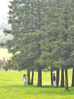 a) Spring and Summer (April to October): During spring and summer, Fairy Mountain is a vibrant green world. At 2,000 meters altitude, the vast grassland resembles a huge green carpet stretching for miles. You can pitch a tent here (the park allows bringing your own tent, rental is 50 RMB per tent), enjoy a picnic; or fly kites, letting colorful kites soar under the blue sky and white clouds; you can also interact closely with free-range cattle and sheep, feeling the harmony of nature. From 6 to 8 a.m., the grassland is shrouded in morning mist, with sunlight filtering through the clouds, creating a dreamy atmosphere—perfect for photography. In the evening, ride a horse galloping across the grassland, with the sunset casting long shadows, extremely romantic (horse riding costs 80 RMB per round, leading a horse for photos 20 RMB per time). The park’s small train (25 RMB per person round trip) is a great helper for touring, stopping at stations like “Grassland,” “Racecourse,” and “Most Beautiful Road.” It is recommended to take the train from the visitor center to the final stop “Racecourse,” then walk back to the grassland to save energy and deeply appreciate the scenery along the way.