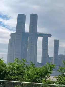 The vibrant doughnut sculpture on the street serves as a whimsical viewfinder. Pedestrians pause, creatively positioning themselves to frame the majestic Raffles City complex across the river within its circle. The click of the shutter captures a unique visual surprise—where the bold lines of modern architecture meet playful curves, resulting in perfectly composed urban portraits.